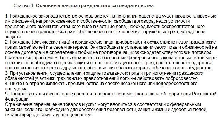 Однако статья 1 ГК РФ содержит также исключения из общего правила, например ограничения: